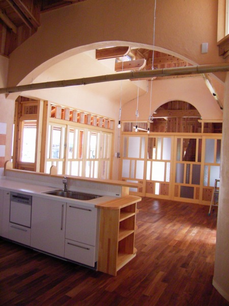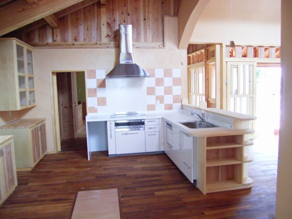 漆喰や杉や琉球松などの自然素材を使用し、内部の仕上げ材も自然オイルを使っているため、新築特有の嫌なにおいが無く、香ばしい。