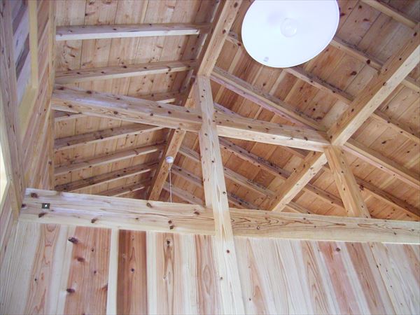 混構造にすることで、各構造の強度的な弱点をカバーしている。屋根は2重垂木にすることで、屋根の重量を支え強風に耐える。