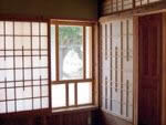 基礎部分を1メートル以上深く掘り高床とした。その床下に外部の空気を取り入れ、無双式通気窓や床格子を通して室内へ取り入れ、引き違いガラス戸の欄間部分にしつらえた無双窓から外へ流れ出る仕組みとした。